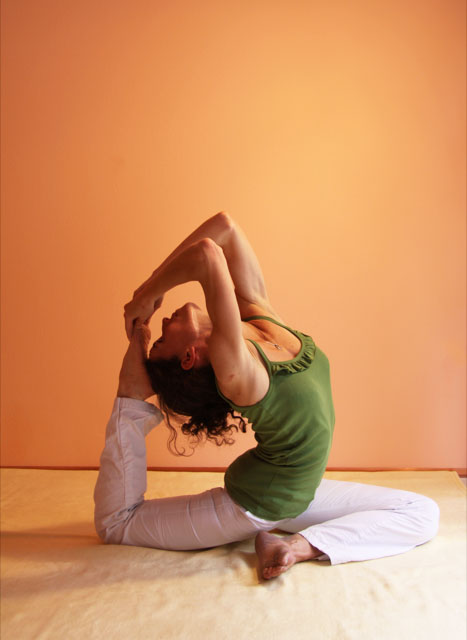 Bei dieser fortgeschrittenen Rückwärtsbeuge werden zwei Bewegungsdimensionen miteinander verbunden.