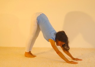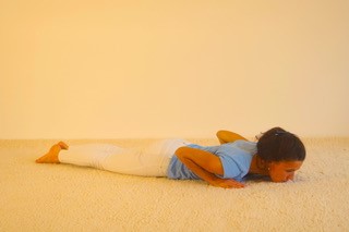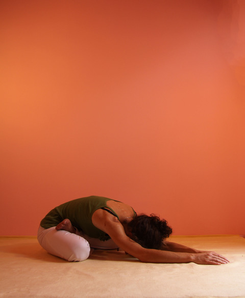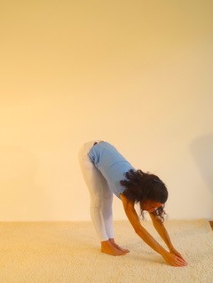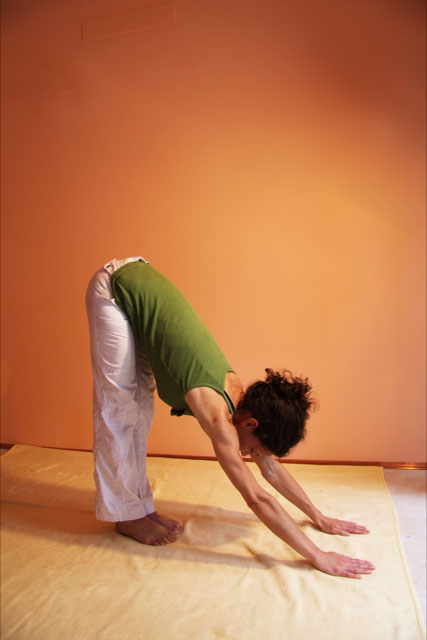 Diese Übung zeigt eine intensive Vorwärtsbeuge – ein sich „Verneigen“ in dem der Oberkörper nach vorne vollkommen gelöst abgelegt wird.